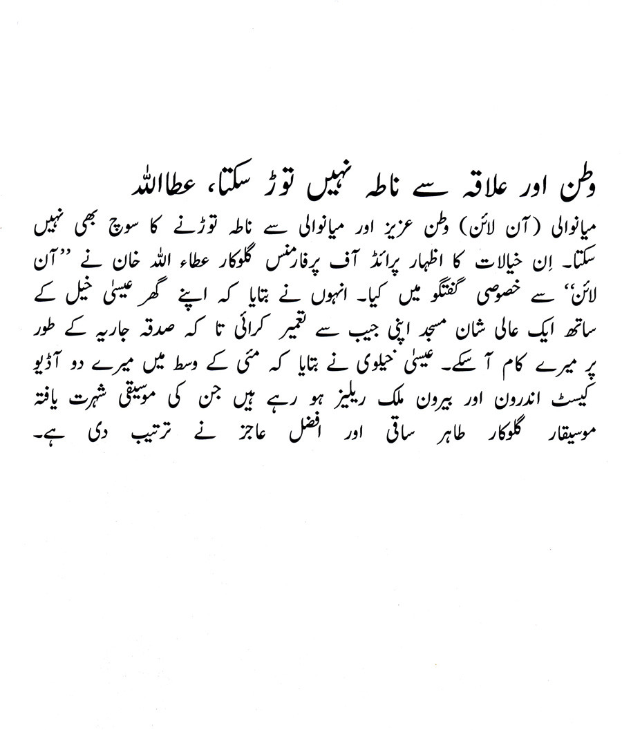 WATTAN AUR ILAHKAY SE NATA NAHI TOR SHKATA: ATTA ULLAH