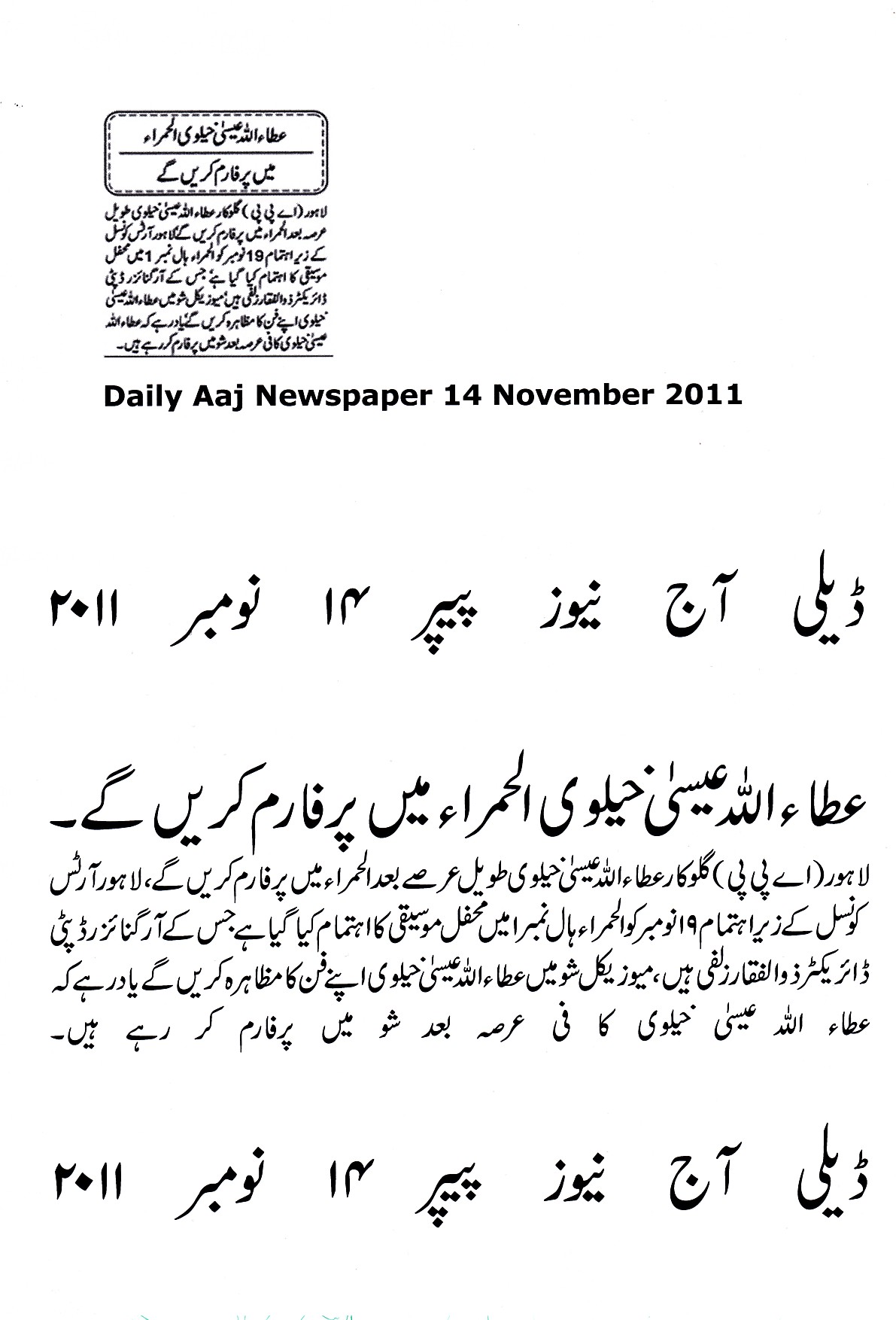 | Article Title | DAILY AAJ PEHSAWER 3 NOV 2011 |